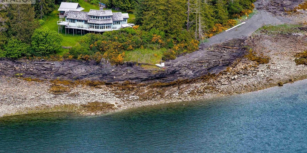 * PREC - Personal Real Estate Corporation. Sweeping grandeur of the ocean and tranquil island living! This custom-built home offers an exceptional opportunity on Giiyang Gwaii (Robertson Island). The island is within the Village of Daajing Giids and has unique access to the township by water or on foot, depending on the tides. One of the 8 island properties, this home on 5.3 acres, hugs the most easterly shoreline with lush forests to the west. Sunlight bathes the interior throughout the day. The choice is yours whether to breathe it in from the inside, on the 1000 sq ft deck, or on 1,300 ft of shoreline. Fish, paddle or boat - the ocean is your oyster!