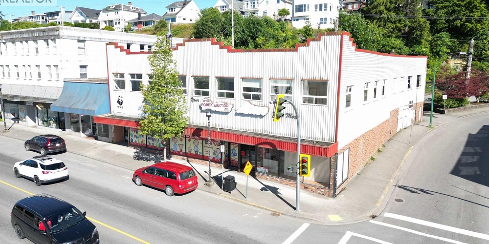 Prime commercial two-storey building offering an impressive total of 15,440 square feet, situated in the heart of downtown, directly across from City Hall. This versatile property has a rich history of multifunctional use, having previously accommodated a mix of retail, residential, office, board office and storage spaces. This expansive building presents endless possibilities for redevelopment, with potential for up to five multifamily units, because of its C1 zoning designation. The generous layout is designed to meet various business and residential needs, while the top floor boasts breathtaking panoramic views of the city skyline, picturesque harbour, and majestic mountains beyond. Seize this exceptional opportunity to unlock its full potential in a rapidly growing area - perfect for investors and visionary developers!