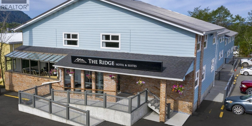 The Port City is bustling & growing! Situated on 1.176 acres, gentle sloping sunny lot, The Ridge Hotel and Suites is -16,000 sf with recent extensive renos inside & out completed in 2019. 37 rooms, 2 are 3-bdrm full-service suites with laundry. 35 rooms reno'd to include kitchenettes, upgraded bathrooms, and furniture. Wide hallways, & each level has supply closet for easy cleaning, linens & bedding storage. On-site laundry facilities for guests, & industrial sized machines available if not using local laundry cleaning service. Restaurant seating capacity for 40 persons with renovated kitchen and newer appliances. Rock now replaces the muskeg allowing for plenty of parking for all sized vehicles. 3-phase power and a BC Hydro Transformer on property if more power required. Expansion of accommodation (increased harbour views) potential with city approvals. Ever increasing revenues. Share sale preferred. Turnkey business.